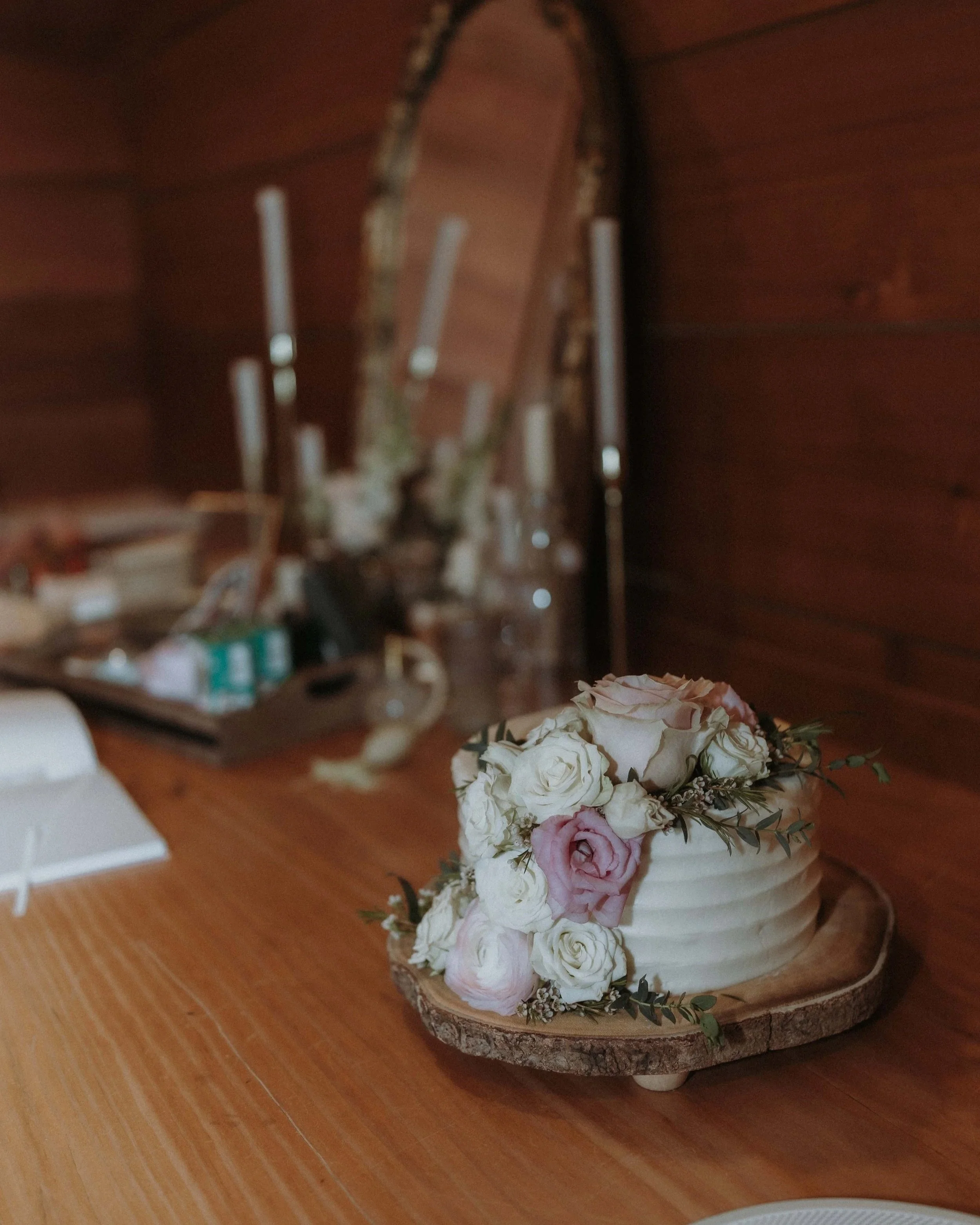 We adore these beautiful roses placed delicately on a spring elopement cake.
